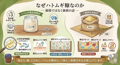 手間暇をかけた“ハトムギ糠床用素材”として