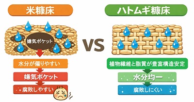 米ぬかとハトムギぬかの大きな成分的な違いは